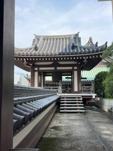 Our first stop on the temple hop is the Shofukuji Temple. Gofuku-Machi bus stop, four bus stops before Hakata Station, is the nearest to the temple. Shofukuji Temple dates back to the 12th century and is the first Zen temple in Japan. The temple grounds are huge, and without a map to guide us, we decided to walk in as far as we could and work our way out. Walking past the main gates to the temple, we can almost immediately feel a sense of zen. One would automatically soften one’s volume when walking within the temple grounds. The gardens of the temple are populated with rows of tall trees, and with the little footfall, walking in the temple grounds felt very peaceful. A wall surrounded the buildings at the back of the temple grounds. We walked along the wall in search of an entrance to these buildings. Little did we know that this part of the temple was off-limits to the public. We assumed these were the living quarters of the temple priests and did not bother looking for an alternate entrance. We spotted a large wooden structure sitting in front of the cordoned-off area and decided to investigate it.