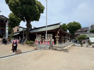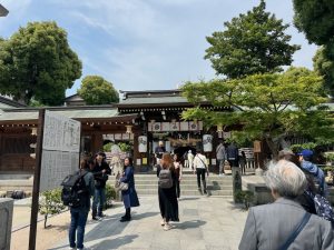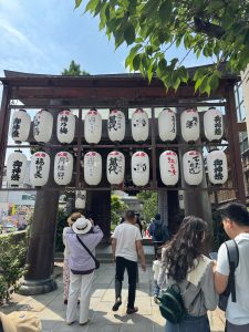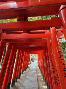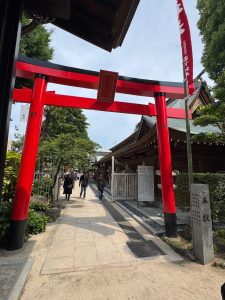Other than the main shrine, several other smaller shrines are at the back of the main prayer hall. As we were walking to these smaller shrines, we spotted a tall structure sheltering a float. This float, adorned with figurines and animals, is used in July to parade through the streets and offer protection against the plague to the locals. We also found several Torii gates in the shrine grounds, mainly at the back of the main shrine. We spent the next 20 minutes walking around the shrine, paying our respects to the deities in the smaller shrines behind the main shrine.
