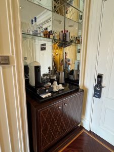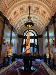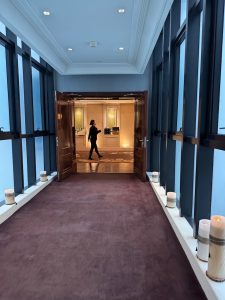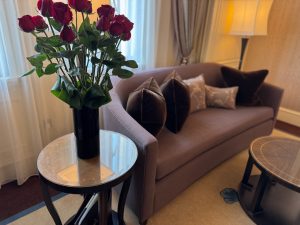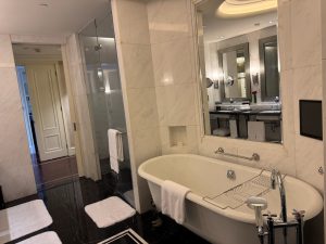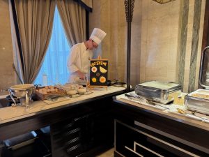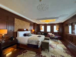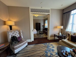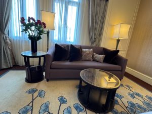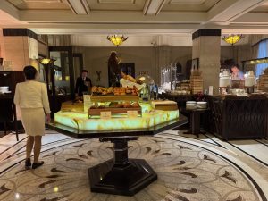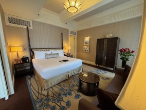 Our hotel is situated on the bank of the Huangpu River on the Bund. The Bund is an iconic stretch of Shanghai, where the old financial centre and activities for the rich and famous are located. Our driver pulled up at the iconic Peace Hotel, where we would call home for the next four nights. At the hotel, we met our butler, Gordon, who gave us a brief orientation of the hotel. Before heading to our room for in-room check-in, Gordon gave us a tour of several suites, including the River View Suite and the Japanese Suite, one of the seven national suites. The highlight of the brief tour was a visit to the Sassoon Suite, the hotel’s Presidential Suite. Perched on the 10th floor, the Sassoon Suite was originally the apartment of Victor Sassoon, the hotel’s original owner. This suite has a vantage point of the Huangpu River and directly faces the Pudong district across the river. Entering this suite, we felt immediately transported back in time to 1920s Shanghai. The suite is very well restored to its original setting. Gordon told us most of the decor we saw in this suite was restored based on the old photos of the suite. We were also told that this suite is the only one with a terrace and that President Obama was a guest in the Sassoon Suite during his visit to Shanghai. After the tour, we were escorted to our room for check-in, where our luggages were already being delivered to the suite.