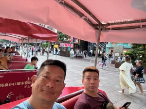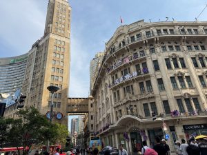After our tour of the hotel, we returned to our room to rest a little. Soon, hunger pangs hit us, and we headed out to the restaurant that Gordon recommended near the hotel for lunch. After lunch, we wanted to purchase a stored-value metro ticket for Shanghai, which would provide convenience when taking the metro around the city. However, the nearest subway station to our hotel does not sell them, and we had to go one station further to People’s Square Station to get them, which is further down East Nanjing Road. Since we had the intention to stroll along East Nanjing Road, we took this opportunity to walk along the street towards People’s Square Station. East Nanjing Road is always crowded with people, regardless of the day of the week. East Nanjing Road is dotted with buildings that were left behind from the World War era, when the city was divided and ruled by different nations. As a result, we see some buildings with a distinctly European architectural style and others with a distinctly Chinese style. Walking along the street feels like walking in history. There are many smaller shops along East Nanjing Road, mainly selling famous Shanghai snacks and souvenirs, as well as eateries and cafes. We also spotted several larger department stores, where most of the luxury brand goods are housed, and fashion boutiques along the road. After getting our transport cards from People’s Square Station, we had the option of taking the metro one stop back to East Nanjing Road Station or walking back. As we were a bit tired after walking, we hopped onto one of the tourist tram rides (RMB 10 each) and saw East Nanjing Road from a different perspective.