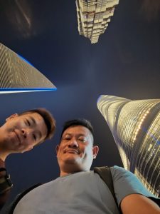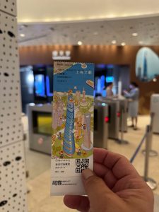 The ferry docked at Dongchang Road Ferry Terminal, and we are officially in the Pudong district. The Pudong area used to be farmland, where no one wanted to stay. Fast forward decades later, the Pudong area is one of the highly sought-after areas with skyrocketing property prices. Pudong had been transformed from farmlands to the city’s financial centre. In the centre of the financial centre lies the Shanghai Three Towers (上海三件套). Our original plan was to catch the sunset from the top of the Shanghai Tower and then return to take night shots of the three towers. Since we were walking past, we took the opportunity to take pictures of the iconic three towers. There is a specific spot where locals gather to take pictures of the three towers is the small open area adjacent to Jin Mao Tower. It is even charted on the Chinese equivalent of Google Maps, as Wang Hong da ka jing dian (网红打卡景点), which translates to a social media influencer’s picture-taking spot. One will not miss the spot, as we saw locals placing their phones on the ground, taking pictures of themselves with the three towers. This is the spot where we can capture the tops of all three buildings – Jin Mao Tower, Shanghai Tower, and Shanghai World Financial Centre, all pointing towards each other in one frame. We tried to follow the locals’ lead and took some pictures before dark. After taking our fair share of pictures, we headed to the Shanghai Tower to view the city from high up.
