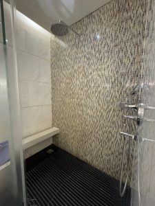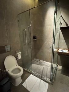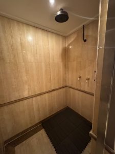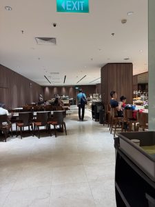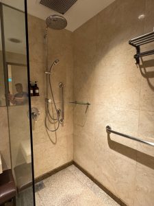 Singapore Airlines has two SilverKris Lounges in Changi Airport, the new and larger lounge in Terminal 3 and the older one in Terminal 2. We used the lounge in Terminal 2 as our flight departed from the terminal. SilverKris Lounge in Terminal 2 features an earthy theme, with the entire lounge decked in earthy brown colours, exuding a relaxing vibe. The low noise level in the lounge also contributes to the relaxing atmosphere. The lounge is mainly furnished with single-seat armchairs. Apart from a small number of seats at the entrance, most of the seats are housed in the area to the right of the lounge. There were plenty of seats to go around, and the lounge wasn’t too crowded at the time of our visit; we had no issues finding a seat. There are charging outlets in each seat, allowing passengers to keep their lifestyle devices fully juiced up before our flights. Food is served in a buffet line found on the left side of the lounge, featuring primarily local dishes with a small selection of Western options. There is a food cart at the end of the food area, serving made-to-order noodles, where the famous Singapore Airlines Laksa is also available. There are several dining tables available in the buffet area, primarily catering to larger groups. As there are limited tables available, we were unable to find any empty tables here. The shower facilities in SilverKris Lounge, located in Terminal 2, are situated inside the toilets. There are no counters to register for the use of these shower suites; passengers can just walk into any empty room to use the shower. All the shower rooms in the male toilet are available at the time of my visit.