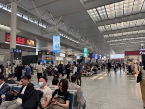 Hangzhou is approximately 179 km from Shanghai, and the fastest way to travel from Shanghai to Hangzhou is by high-speed train, which takes about 1 hour. Shanghai has two train stations: Shanghai Station and Shanghai Hongqiao Train Station. Although slightly farther from where we stayed, we took the train from Shanghai Hongqiao station as there are more connections between the two cities here. Three train stations serve the city of Hangzhou: Hangzhou Station, HangzhouDong Station, and HangzhouXi Station. Hangzhou Station is in the centre of the city, but connections between Shanghai Hongqiao Station and Hangzhou Station were few. HangzhouXi Station is far from the city, while HangzhouDong Station offers more connections and is closer to the city. Train tickets can be bought at the train station or via Trip.com. We purchased our tickets through the Alipay app, which includes a link to the Trip.com microsite.