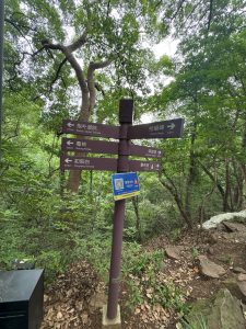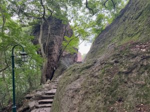 The first sight we visited in Hangzhou was Baochu Pagoda, one of the two pagodas in West Lake. Perched on top of a hill, we thought scaling up this pagoda would give us a great view of the entire West Lake. As our Didi ride came to a stop, we were dropped off at a neighbourhood-looking area. It took us 30 minutes to travel from our drop-off point to Baochu Pagoda. The walk to Baochu Pagoda requires a short hike up a small hill through a forested area. Occasionally, we saw groups of elderly people having fun in the open spaces along the path. As we walked along the path with signs pointing to the pagoda, the forest scenery gave way to rocky formations. The pagoda is not far from a pavement that seemed to wedge between narrow rocks.