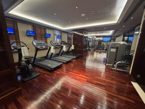 The hotel also has a small gym, located on level 1 in the same area as the Willow Stream spa and the swimming pool. Despite its small size, the gym is well equipped with workout machines for cardio and strength training. For cardio training, guests can work out on the stationary bikes, the three treadmills, and the elliptical machine. The gym is equipped with machines that work out every muscle in the body, including a machine for the abs. On top of these strength training machines, the gym is also equipped with a set of free weights. In addition to the equipment on the main gym floor, the Fairmont Peace Hotel also features a yoga studio for guests to practice yoga. I am not sure if the hotel offers any yoga lessons, as there were no indications that it does.