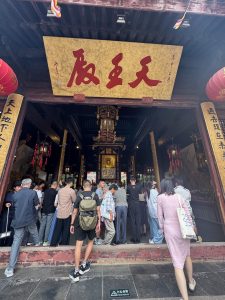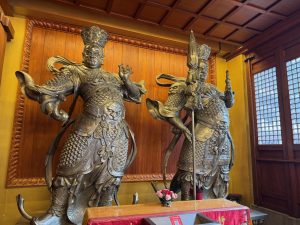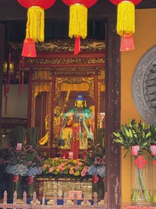 After offering our prayers, we retraced our footsteps and headed back to the second courtyard to offer our prayers to the gods installed in the side shrines there. The God of Fortune and Guanyin were among the more popular gods in the second courtyard, where we saw more people praying. We headed to the first courtyard after praying and shopped for some charms for my family members. The staff advised us to return to the ceremonial hall located between the two City God halls to have our charms blessed. The cleansing ceremony involves a Taoist priest chanting and sprinkling holy water onto our charms. We had pretty much covered everything in the City God Temple in about 45 minutes.