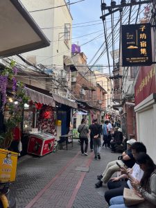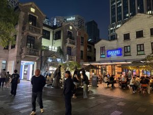 Leaving Sinan Open Air Museum and 15 minutes walk later, we arrived at Xintiandi. Xintiandi is a relatively small area compared to Tianzifang, primarily comprising restaurants and bars, as well as a handful of shops, housed in stone and brick buildings. As it was dinner time, Xintiandi was especially lively with diners chatting and the clinking of wine glasses. Several large shopping malls occupy the land adjacent to Xintiandi. Filled with luxury boutiques and billboards so bright that they illuminated the street. As there wasn’t much for us to do here, except watch people eating and drinking, we didn’t stay long and headed back to our hotel via the subway.