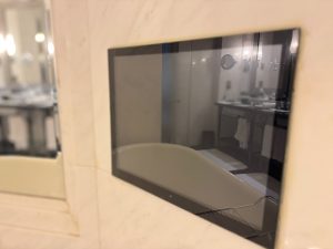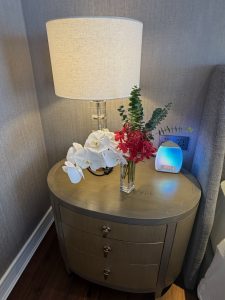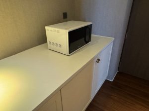 Beyond the sofa area, a slender marble-top table seemingly segregates the entertainment area from the rest of the bedroom. The sleeping area features a large king bed positioned against the wall, inviting its occupants to rest in it. The king bed is very comfortable and provides us with excellent sleep quality every single night. To ensure its guests have a good night’s sleep, the resort offers a wide selection of pillows to suit every need. The sleep quality is further enhanced by the iHome speaker placed on one of the two bedside tables, which plays soothing music, helping us fall asleep more quickly. Speaking of the bedside tables, we welcomed the large three-drawer bedside tables, which provided us with plenty of space to store our belongings. Each bedside table is equipped with two international power outlets and two USB-A ports, allowing us to charge our mobile devices. Despite being placed to face the TV, I thought the distance from the bed to the TV was a bit too far, making it somewhat difficult to watch TV on the bed. I suppose the resort intends to relax one’s mind, rather than stimulate it, which could impact sleep quality.