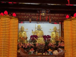 After visiting the giant Buddha, we returned to the main prayer hall to offer our prayers. We did not see any statues of Buddha inside this prayer hall; instead, we saw some tablets. Since there is nothing else we can do here, we exited the temple and headed to our next sight.