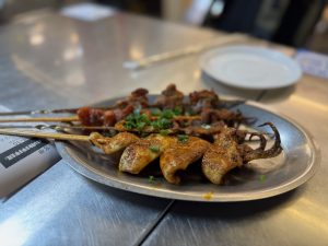 Since it was way past dinner time, we returned to the Western part of East Nanjing Road (opposite People’s Square Station) to look for dinner. I thought I saw some restaurants on this stretch of the road a few days ago when we walked to this part. We came across a stretch of roadside stalls selling snacks and purchased some tasty lobster dumplings. Most of the restaurants at this hour (it was already approaching 10 pm when we arrived) seem closed. We settled our dinner at a BBQ restaurant in one of the small alleyways; we spotted some restaurants that were still open till late at night. As it was getting late and we had an early flight the next day, we headed back to our hotel on the Bund after dinner. The shops below our hotel were still open, so we bought some street snacks to take back to our room to eat while we packed our luggage for our departure tomorrow morning.