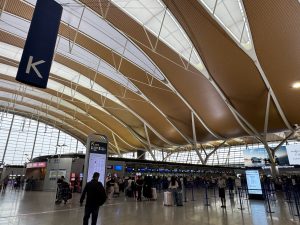 Shanghai has two international airports, Pudong and Hongqiao. Our Asiana Airlines flight departs from Shanghai Pudong Airport Terminal 2, which predominantly serves Star Alliance carriers. Asiana Airlines operates 10 check-in counters in Row K, the second row of counters from the left of the terminal building. There are two queues serving three groups of passengers at Shanghai Pudong Airport, and Economy Class passengers get their own line. In contrast, Star Alliance Gold and Business Class passengers are served in another line. The entrance to the Business Class queue was guarded by one of the ground staff to ensure only Business Class passengers were allowed in the queue. As we were one of the last few to check-in, there was no queue at the Business Class line (and Economy Class for that matter). The check-in experience fell short of typical Business Class standards. The ground staff came across as couldn’t care less and took his time to process our check-in. And when there were some issues with our seating, the ground staff took the time to confirm our seats over the phone without providing any updates on the status of the situation. He did not even bother telling us where to go after he processed our check-in (Shanghai Pudong Airport has two separate airside areas for domestic and international departures). The only information we were given was to head to the D77 Business Lounge after immigration.