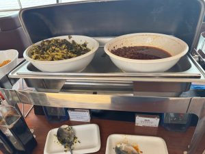 The food offered in the China Eastern D77 Business Class Lounge was quite extensive. There are two buffet lines in the lounge offering different food options. The buffet table located along the main entrance corridor primarily serves hot food, offering five options that range from curry chicken to fried rice to dim sum. The buffet table in the adjacent corridor mainly serves cold food and bread, from salads to fresh-cut fruits. It is here that I spotted a noodle counter, serving four options of made-to-order noodles. The additional condiments to complement the noodles are located opposite the noodle window. China Eastern D77 Business Class Lounge also features a bar that serves spirits and wine, but it was not open during my visit. There are no shower facilities in the China Eastern D77 Business Class Lounge.