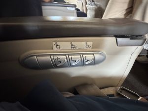 Singapore Airlines A350-900 medium-haul Business Class seats are arranged in a 1-2-1 configuration. Each of the 40 seats has a pitch of 60″ and measures 28″ wide, capable of reclining 180° into a flat bed. I find these seats very comfortable, thanks to the luxurious leather used and the thick cushion padding designed into the seats. However, I thought the design of the seats makes moving in and out a little challenging due to the narrow access to the seats. Each of these seats comes in three modes: the upright mode for take-off and landings, the flat bed mode for sleeping and the in-between lounge mode for relaxing. The three preset seat modes can be activated with the touch of the haptic seat control buttons located on the inside of the seat armrest. In the bed mode, despite not being fitted with a door, privacy is ensured by the high seat shell design. However, I find the angle a tad too low when the seat is fully reclined, and it doesn’t help when the pillows provided by the airlines are too soft for my liking. I liked the lounge mode the best when I am not resting in the bed mode. The lounge mode allows me to relax and watch movies from the IFE. I like how the seat angle can be further customised according to my preference in lounge mode.