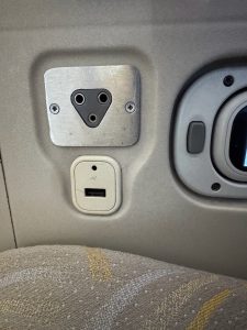 When it comes to storage, the only place we can store anything is in the seat pocket in front of us. There are no additional cubby holes for us to store our stuff. Fortunately, this seat pocket is large enough for me to place my iPad and some small items. Asiana Airlines A321-200 Business Class seats are fitted with a small cocktail table stored in the centre console between the two seats. The seat table is hidden in the armrest and is quite sizable when fully deployed. Other than the reading light above us, there is also a reading light that sticks out of the seat below the headrest. Asiana Airlines A321-200 Business Class seats are equipped with a USB-A charging outlet situated beneath the armrest, alongside two international power sockets in the centre console, allowing us to charge our lifestyle devices.