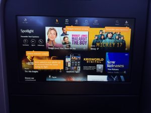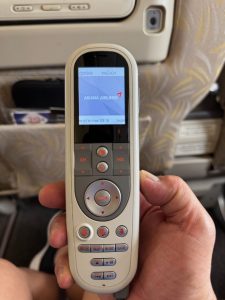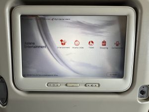 Each Business Class seat onboard Asiana Airlines A321-200 is fitted with a 10.6″ personal TV screen. As this is an older product, these TV screens have rather grainy picture quality by today’s standards and do not come with touchscreen functions. Selection of inflight entertainment is solely via the IFE controller, stowed under the armrest of the centre console. The IFE controller was rather old school. In the front, there are buttons that control the overhead reading lights and the flight attendant call button, as well as buttons for entertainment selection. A QWERTY keyboard is located on its back. The headphones provided by Asiana Airlines to Business Class passengers do not feature noise-cancelling functions, but are very comfortable to wear over a prolonged period. The Asiana Airlines A321-200 features the older OZ:enter IFE menu, which was designed for use with non-touchscreen TVs. The menu is well-organised, and finding the entertainment I want was a breeze. The OZ:enter is stocked with smaller entertainment options compared to their A350-900 aircraft. However, I was still able to find the latest Hollywood blockbusters, Korean movies and TV shows. For a 2-hour flight, I thought the contents of OZ:enter are sufficient to keep passengers entertained.