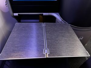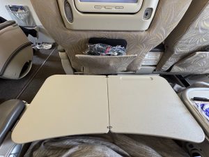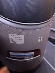When it comes to storage, I appreciate the small cabinet installed at the side table by Singapore Airlines in its regional Business Class seats, allowing passengers to stow small items and the tablets they bring along with them. In addition to the side cabinet, the space beneath the footwell can also be used to store carry-on luggage, which is generous enough for me to place my backpack. The seat pocket in Singapore Airlines’ regional Business Class seats, though technically can be used to store items, is positioned in a way that makes accessing it challenging, which discouraged me from placing anything inside.