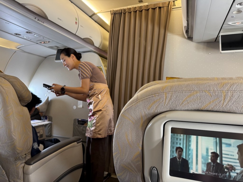 I had a great flight flying with Singapore Airlines in their regional Business Class. The seat was comfortable, and I appreciated the flatbed mode that came with it, allowing us to catch a power nap. The entertainment was abundant, making the 2-hour flight whiz past. The service was good on board, with the cabin crew being friendly and sincere.