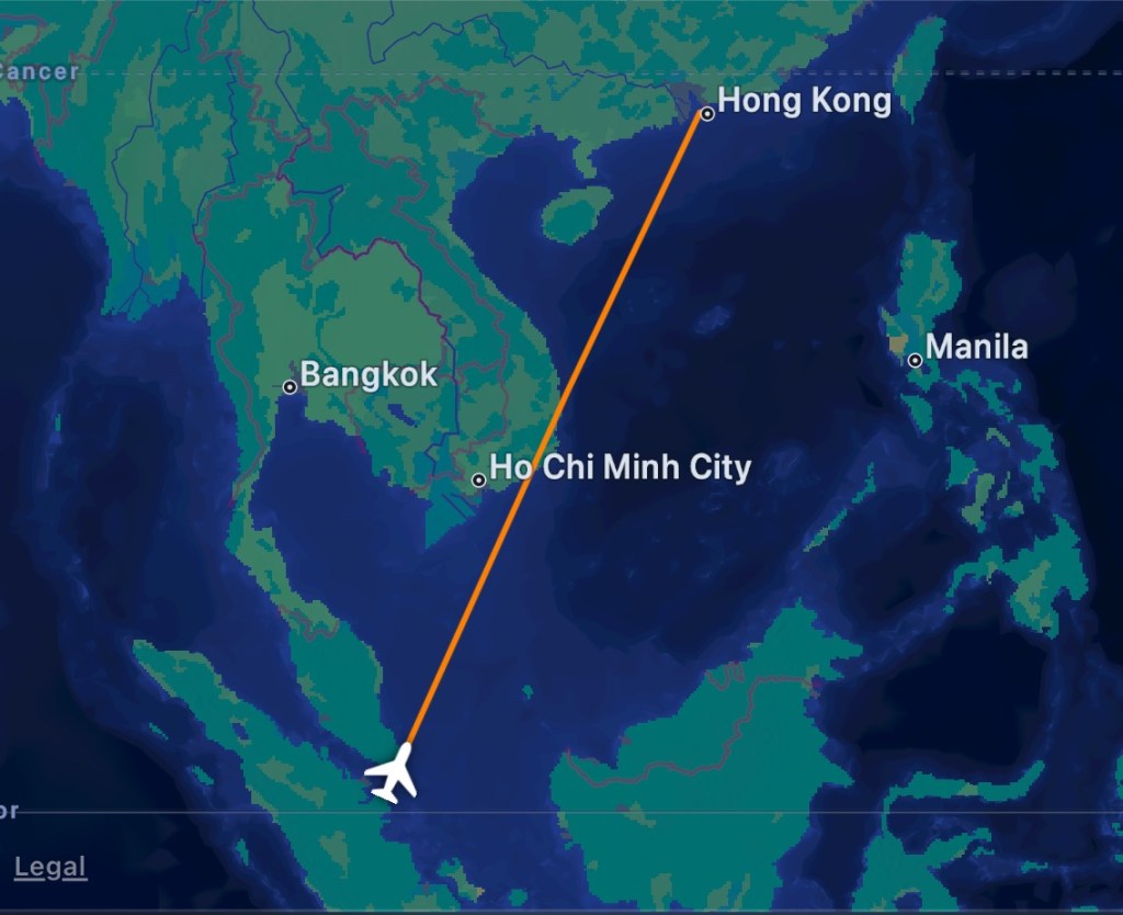 Singapore Airlines HKG – SIN FlightpathThe Singapore Airlines B787-10 that flew us to Singapore up close
