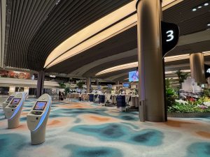 Singapore Airlines operates out of Singapore Changi Airport’s Terminals 2 and 3, with regional flights departing from Terminal 2. As a home port, Singapore Airlines operates several rows of check-in counters in Rows 3, 5 and 6 in Terminal 2. Passengers flying in Business and Premium Economy Class, as well as Star Alliance Elite Gold members, check in at the counters in Row 3. Only one counter for Business Class was operational for this early morning flight, resulting in a short wait of about 10 minutes for our check-in to be processed, with three other groups of passengers ahead of us in the queue. The ground staff was warm and friendly. She was efficient in checking us in, and we were done in under 5 minutes. Before sending us to immigration, the ground staff provided us with directions to the SilverKris Lounge and also reminded us to allow extra time to reach our boarding gate, as it is located in Terminal 1.