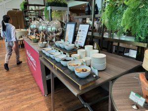 Breakfast is served at Nourish restaurant, located on the lower ground level, daily from 6 am to 10:30 am during weekdays and 6 am to 11 am on weekends. There are plenty of options served during breakfast, including items from continental and English breakfast to local dishes like grilled pork and soup noodles. There is also a great selection of fruits and salads offered during breakfast. As the resort promotes wellness, the breakfast served has healthier elements such as the use of brown rice and multi-grain bread. Nourish also offers detox and healthier, freshly squeezed fruit juices that aid digestion. The breakfast served was hearty, nutritious and delicious, without sacrificing taste. There are minor menu changes for both days we dined during breakfast.