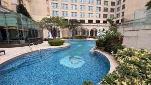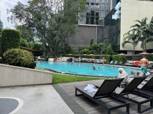 The resort features a large free-form saltwater swimming pool, located on the lower ground floor just outside the Nourish restaurant. Nestled in a garden, the swimming pool resembles an oasis amid a concrete jungle, surrounded by tall buildings and green vegetation. The pool is of a good size, allowing guests to swim a decent number of laps, while catering for children to play safely in it. There is no shortage of sundeck chairs surrounding the swimming pool, which was mostly empty during our stay. Despite being surrounded by tall buildings, one can still find a spot to get a dose of vitamin D. In addition to the main pool, the swimming pool features a small section that has been carved out, housing the jacuzzi facilities.