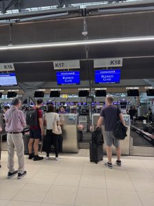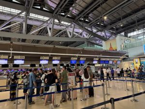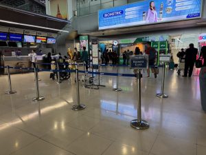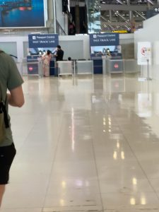 Singapore Airlines check-in counters in Bangkok Suvarnabhumi Airport are found near the end of Row K, in the centre of the departure hall, with Door 5 being the closest door to it. Singapore Airlines has three queues for checking in, catering to Economy Class, Business Class, and KrisFlyer elite members. Of the seven counters, three serve Economy Class passengers, one is dedicated to KrisFlyer Elite Gold and Elite Silver members, while two are designated for Business Class passengers. The airlines also operate one additional service counter for passengers with flight-related issues. However, this counter also serves Business Class passengers when the other two counters are busy. The ground staff was friendly and worked with great efficiency, processing our check-in in under 5 minutes. Before sending us off to immigration, the ground staff provided us with information on our boarding gate and departure time. He also recommended that we use the Singapore Airlines SilverKris Lounge as it is diagonally opposite our boarding gate. Business Class passengers, regardless of airlines, can use one of two Fast Track immigration lanes, located at either end of the terminal building. I appreciate this service at Bangkok Suvarnabhumi Airport, as it meant we didn’t have to queue and were through immigration almost immediately when we arrived at the counters.