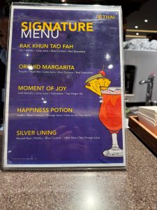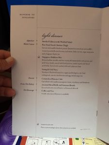 Singapore Airlines does not offer its “Book-the-Cook” service for flights out of Bangkok (possibly because it is a turnaround flight). To celebrate Singapore’s upcoming 60th birthday, the airlines offer a Singaporean dish as one of the three options on top of the Western and Thai options. Business Class passengers can pre-select the food option from the Singapore Airlines app and website. I pre-selected the Singapore Hokkien Mee after reading rave reviews of this dish. Due to the short flight time, meals were served in one tray instead of course-by-course as with their longer-haul Business Class products. While the salmon in the salad tasted fresh, I thought the noodles came across as a tad dry (those we had in Singapore came bathed in a small pool of broth), but the prawns were fresh, and the pork was very tasty. I like the sambal that came with the noodles, which is mildly spicy and sweet. I wished they were more generous with the sambal chilli sauce. The meal was finished off with a delicious Banana cake dessert, which was soft and fluffy with a harmonious taste of vanilla and banana.