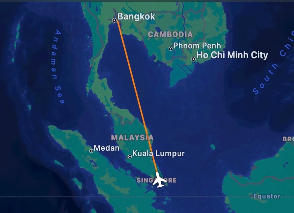 Singapore Airlines mainly operates the A350-900 medium-haul variant and the B787-10 between Singapore and Bangkok. The aircraft assigned for this flight was the B787-10.
