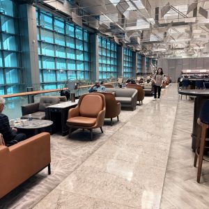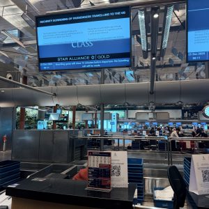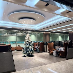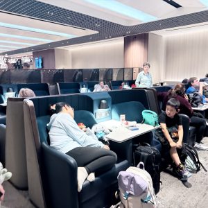 Singapore Airlines check-in counters at Hong Kong Chek Lap Kok Airport are located in Row F of Terminal 1, in the central part of the terminal. However, as we were coming from Macau, the Macau-Hong Kong bus dropped us off at the Sky Pier instead of the main airport terminal. Singapore Airlines did not operate any dedicated check-in counters at the Sky Pier Terminal. After asking the staff at the Cathay Pacific counter, we were directed to the last three counters on the extreme right of the terminal. Singapore Airlines, like many other airlines, uses the three generic check-in counters to check in its passengers. All passengers checking in here, regardless of travel class or membership status, must use a single queue. Fortunately, the number of passengers from Macau was low, and there was no queue upon our arrival. The check-in process took a while because the counter staff had to confirm the bus’s arrival time before she could pull up our information from the airline list. The staff had to check our airlines and then our flight to pull out our information. However, once the information was obtained, our check-in was processed quickly. After checking our luggage, the staff gave us vital information like where to obtain the airport tax refund (apparently, as long as we did not enter Hong Kong, we were refunded HKD120 per adult), our boarding gate and timing, and the lounge location.