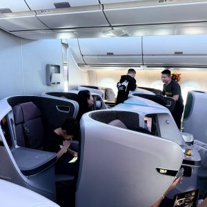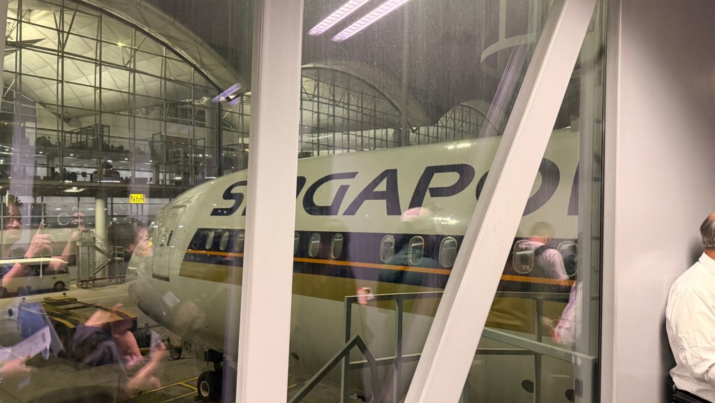 Singapore Airlines operates several aircraft between Singapore and Hong Kong, from the superjumbo A380-800 (operational seasonally) to the B777-300ER, B787-10, and A350-900. We flew on their B787-10 on this trip.