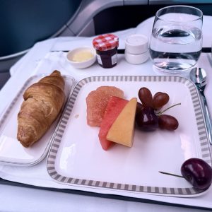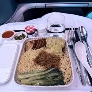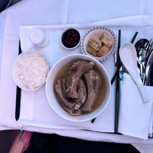 Meal service begins about 1 hour after takeoff. We were able to see the menu six weeks before our flight. As I was looking through the menu, the food on offer on this flight was not to my liking, hence I pre-booked the Hindu non-vegetarian meal from the special order menu. Before departure, the cabin crew came around to confirm our pre-booked meals. Since I pre-ordered the special meal, I was served about 30 minutes before the main service. For the Hindu non-vegetarian meal, I was served curry lamb as the main course, with a salad, potato mash, and a bun. The curry lamb was tasty and flavourful, without the lamb smell, and the rice served with it was fluffy. I was also given a Häagen-Dazs ice cream, along with the rest of the passengers, after the meal service. For an Economy Class meal, I found it tasty and filling.