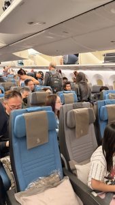 The light blue and grey tones used in the seats on board Singapore Airlines made the Economy Class cabin look vibrant and relaxing at the same time. The colour tones used also conveyed a cheerful vibe, which was a great start for passengers embarking on their holidays with the airline. While the light tones on the seats give off a cheerful vibe, the charcoal colour used on the seat backs exudes a classy vibe. The dark and light colour schemes used in the Economy Class cabin complement each other very well. The 301 Economy Class seats on Singapore Airlines’ B787-10 are split into two sections: 150 in the forward cabin and 151 in the aft cabin. Despite the large number of seats in both cabins, the Singapore Airlines Economy Class cabin felt cosy and well-spaced.