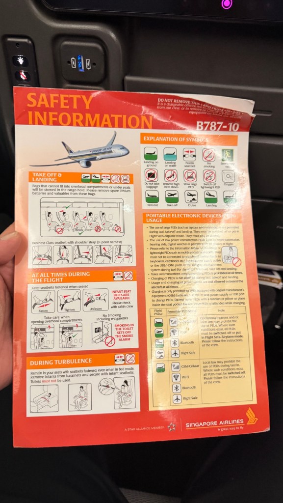 Singapore Airlines B787-10 safety cardSingapore Airlines livery up close