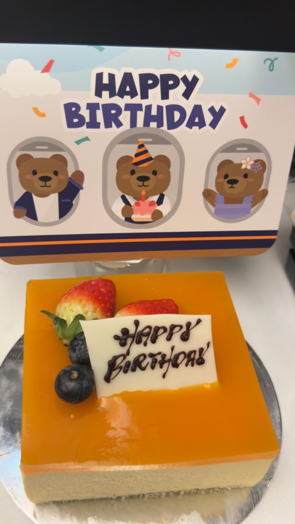 The birthday cake surprise that the cabin crew prepared for my sibling, despite his birthday being 3 days ago