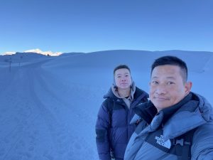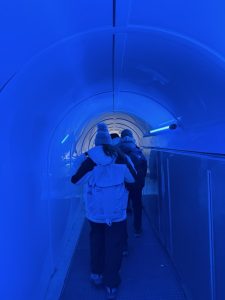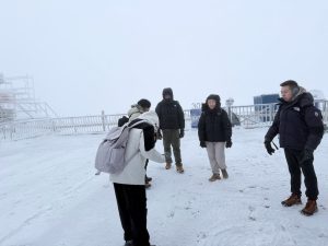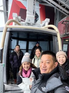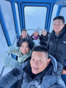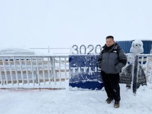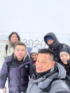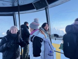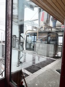 The Rotair pulled into the building at the peak of the mountain, and we were greeted by some friendly staff asking where we wanted to go. The first thing on our minds was to do the Cliff Walk and the Glacier Ice Flyer. The Cliff Walk is Europe’s highest suspension bridge, perched at 3,041m, the 100m long suspension bridge offers a view of the Swiss Alps and a 500m deep chasm. The bridge would then bring us to our next activity, the Ice Flyer, where we would take a chairlift over the glaciers with crevasses of up to 10m deep. Well, at least that was what we planned to do. Upon taking the elevator up to the top floor of the building, our hopes of experiencing the Cliff Walk and Ice Flyer were dashed. On the top floor, we saw a make-shift metal container tunnel with a side opening that leads to the viewing platform, but access to the other end of the tunnel was sealed with tape. At this point, we thought we might have gotten the access to the Cliff Walk wrong and headed out to the panorama terrace. We were again disappointed as we were not able to see the mountains or anything else due to the clouds. The construction of the Titlis tower also did not add to the beauty of the place. The whole small terrace felt like a construction site. All we could do up here was to take some pictures with the “3,020m” logo.