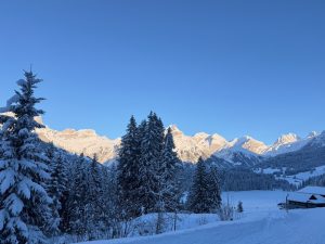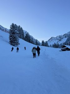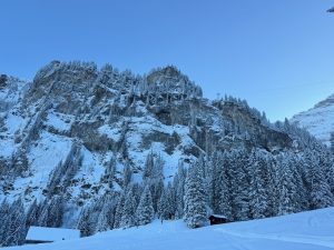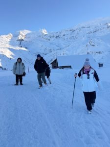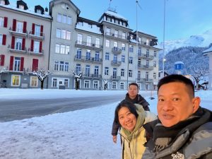 At the base station of the Älplerseil Untertrübsee-Trübsee cableway, we thought we would see the large cable car station that we had taken earlier in the morning up Mt. Titlis. But what greeted us was a snowy path that led to a large hut. We did not see any large cable car station or train station. We headed to the hut (which is a restaurant and a rest place for skiers) and asked for directions. To our horror, we were far from being close to the end of our walk. The staff at the restaurant gave us directions to the train station and told us, “It is just a 40 min walk”. Well, since we were already here, we can’t possibly go back up and walk another 1 hour to the Trübsee cable station. The only way was forward. As we were resting outside the restaurant, we bumped into the lady we met in the cable car earlier this morning. She asked if we had found the lake and admired us for making it all the way here, as there are few non-skiers here (later, we found out what she meant). The start of the walk was relatively straightforward and flat. But this is when we realised that we were actually walking on a ski slope. As this was a ski slope, it meant we would be going downhill most of the time. We were well aware that we were walking on a ski slope and stuck to the side of the path as much as we could so as not to be a nuisance and get in the way of the skiers (I’ll be super annoyed if I were skiing and some tourists just walk in the middle of the ski track). Although it was a downhill path, the walk was equally challenging as we had to avoid the skiers and at times crossed the ski path (when it was clear), at the same time looking for a solid snow path so our feet wouldn’t sink too deep into the snow. The scenery was stunning as we were walking down: the snow-covered forest on one side, the afternoon sun rays hitting the top of the Swiss Alps on the other side, and the snow-covered buildings below looked like some Lego models. Alas, we were too busy focusing on each step we took and being mindful not to impede on the skiers that we did not have the time to admire the breathtaking scenery that was before our eyes. It took us 45 mins to reach the bottom of the slope and the end of our little adventure on Mt. Titlis. Time to head back to Luzern for our train to Interlaken.