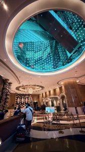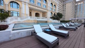 The Presidential Suite features a total of six balconies, with three located in the living room, two in the bedroom, and one in the dining room. These balconies are not interconnected, and although the space afforded at the balconies is not large, it is sufficient for the suite’s occupants to step out and enjoy the views of the pool. Since these balconies are not large, they are not furnished with any furniture.