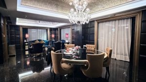 The dining room in the Presidential Suite is small but functional and the artpieces in this room makes the dining room look luxurious