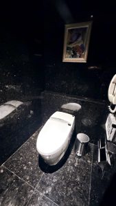 The powder room in the Presidential Suite is rather large and only houses a toilet and a sink