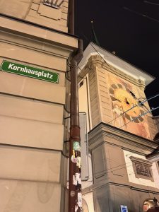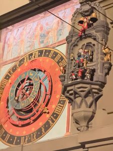 The clock, despite being built in the early 13th century, still shines with its colourful facade even at night. There are two faces to the clock: one that tells time, facing Main Street, and the other, with both the clock and the astronomical face, showing the day of the year and aligning with the star signs. We were fortunate to witness the striking of the bell at the hour, during which we spotted the mechanical movements of the puppets installed on the astronomical side of the clock. As it was getting late and we were tired after a full day of travelling, we headed back to the hotel and rested for the night. We will see more of the clock (and the city) tomorrow before heading to Luzern.