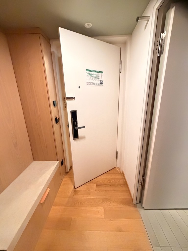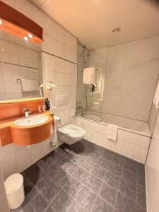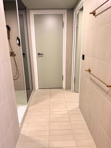 Sharing the same space in the entryway and situated across the drawer is the second entrance to the bathroom. I thought it was genius of the hotel to fit another door to the bathroom here. Having a door here gave us the convenience of accessing our clothing from the only wardrobe in the entryway after a shower. The other purpose I could think of is having a powder room without actually fitting a powder room. Most suites in four or five-star hotels would feature a powder room. Due to the design of the layout, it does not seem that Swissôtel Kursaal Bern would have additional space to fit a powder room. Instead, having a door at the entryway creates the illusion of having a powder room where our friends can access the toilet without barging into the bedroom.