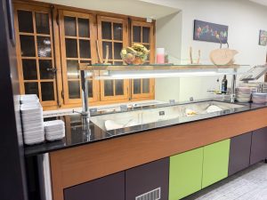 Salad and fruits bar during breakfast