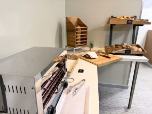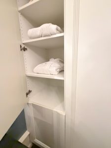 The table in the bathroom gave us some space to stow our stuff