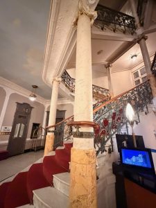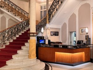The historic staircase next to the hotel reception
