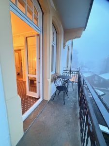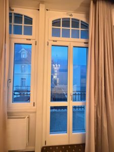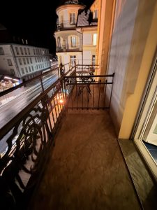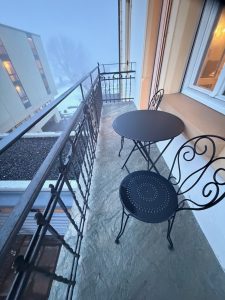 There are technically three balconies in the Royal Suite that were assigned to us, of which two are usable. The first one is the bathroom balcony. Due to its location, we almost never use this balcony. Moreover, it is not furnished with any furniture. The other two balconies are accessible via the living room and the bedroom respectively. These two balconies are furnished with an outdoor table and two chairs, which allowed us to relax and people-watch from the balcony. The balcony in the living room faces the main road, where we mainly used to drink coffee in the morning or just hang out and enjoy the winter breeze. The balcony in the bedroom faces the new wing of Hotel Royal St Georges. This is the largest of the three balconies. Due to its facing, we hardly use this balcony, as there are hardly any views.
