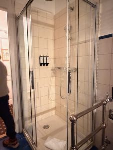 The walk-in shower in the bathroom of the Royal Suite