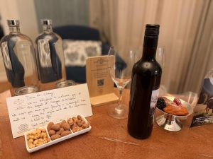 The welcome amenities provided by the hotel in the living room