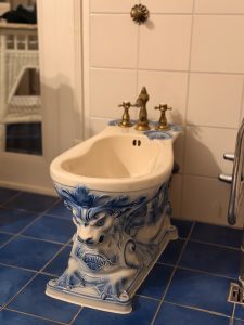 The bidet also has gryphon carving