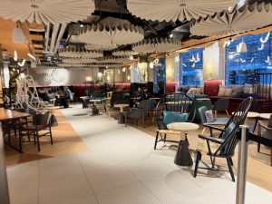 Hotel lobby opposite the reception