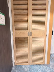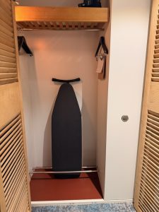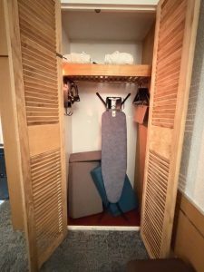 We found ironing equipment and sofa cushions inside the wardrobe
